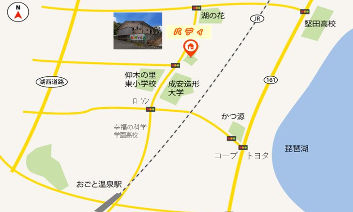 真野しょうぶ苑から、車で5分程のところにある、仰木の里東地域にあります。(成安造形大学横)